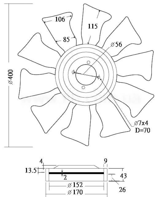 Cánh quạt xe nâng Mitsubishi S4S/F18B có chức năng hút không khí vào két nước và thổi ra ngoài, giúp làm mát động cơ và các bộ phận khác của xe. Cánh quạt quay bằng trục quay được nối với động cơ xe.